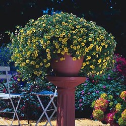 Калибрахоа является самой последней новинкой из петуний. Две группы этой культуры — Million Bells и Superbells — только-только начали появляться в продаже в садовых центрах, но сразу завоевали симпатии цветоводов. В самом деле, подвесные корзины и кашпо с побегами калибрахоа, усыпанными огромным количеством некрупных цветков-граммофончиков среди изящной мелкой листвы, выглядят очаровательно. (Million Bells®) - Многолетнее растение, выделенное ботаниками в отдельный род Calibrachoa. Мелкоцветковая и мелколистная родственница знаменитой сурфинии. Сорта этого растения (так же, как сорта сурфинии) - результат труда селекционеров японской фирмы “Сантори Лтд.”(“Suntory Ltd.”) У них полупоникающие побеги, сплошь покрытые некрупными, изящными, фиолетово-голубыми, вишнево-красными, или розовыми колокольчиками. Именно потому растение получило название Миллион Беллз, что значит Миллион Колокольчиков. Характеризуется ранним и обильным цветением, побеги не ломаются ветром. Имеются формы с сильнопоникающими побегами под общим названием Миллион Беллз Трейлинг (Million Bells® Treiling) с белой, лиловой и розовой окраской цветков